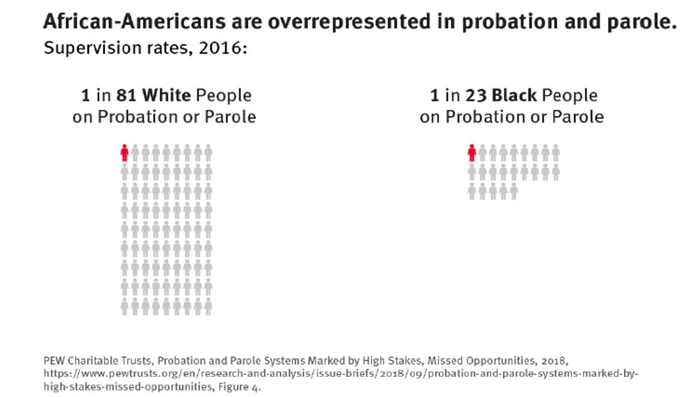 Let's finally stop pretending that probation & parole offer “leniency.” As our new @HRW/@ACLU report shows, probation & parole are feeding people-disproportionately Black & brown-right back into jail and prison. https://www.hrw.org/node/375863 pic.twitter.com/ioE439ouZp