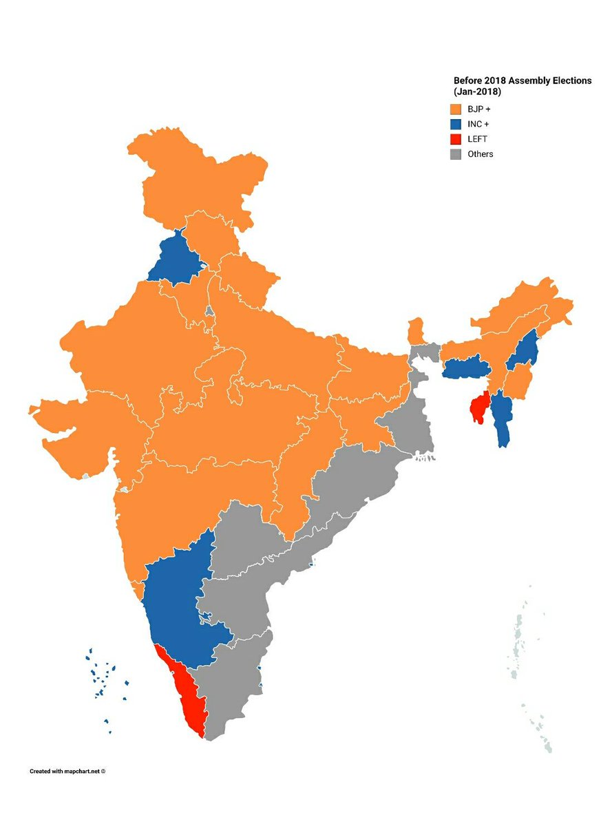 Before and After #2018AssemblyElection @INCIndia expected to Win Central India: Polls. Blue Surges, Saffron wipes out...!!! #MadhyaPradesh #Chhattisgarh #Telangana #Rajasthan #Mizoram #Elections #BJP #INC @RahulGandhi @narendramodi @priyankac19 @sambitswaraj pic.twitter.com/tRzOua0Ri9