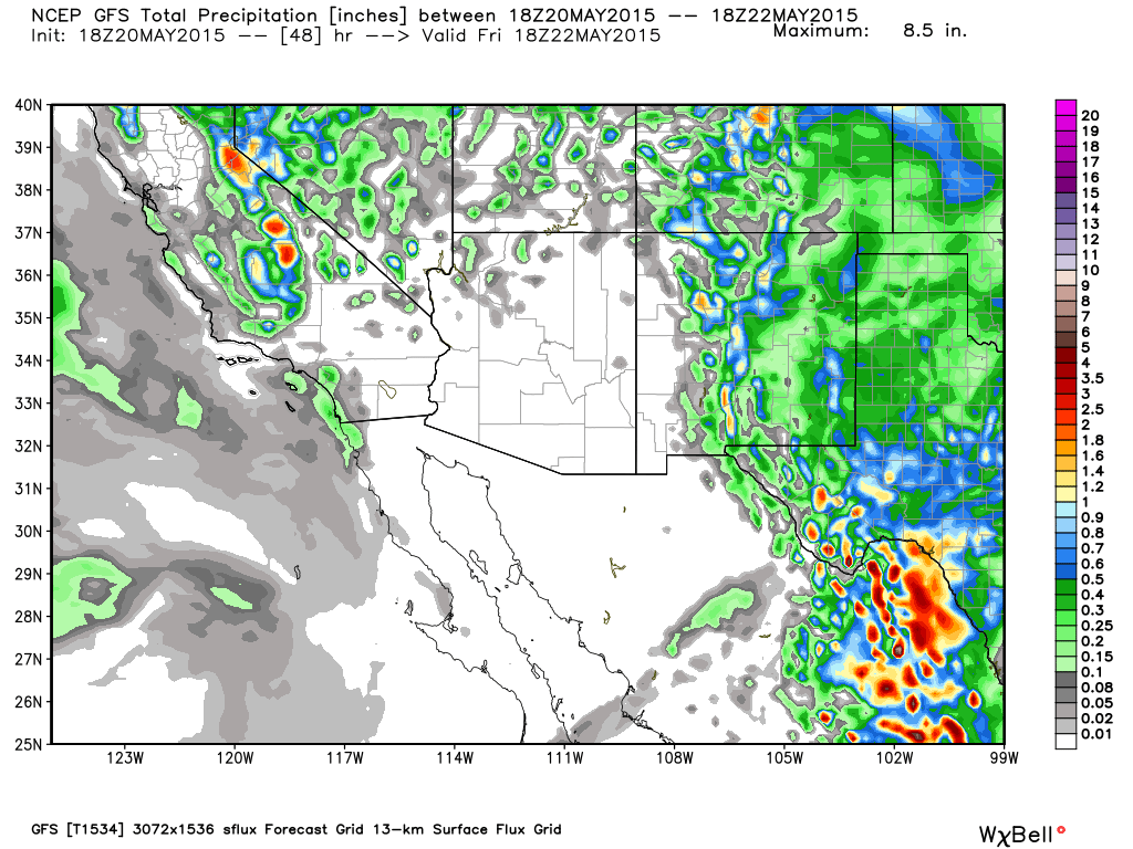 Left shows rain estimate for Thu. as of last night. On right latest model run. Heaviest rain shifts west toward #ABQpic.twitter.com/gZ2Yj7C6s1