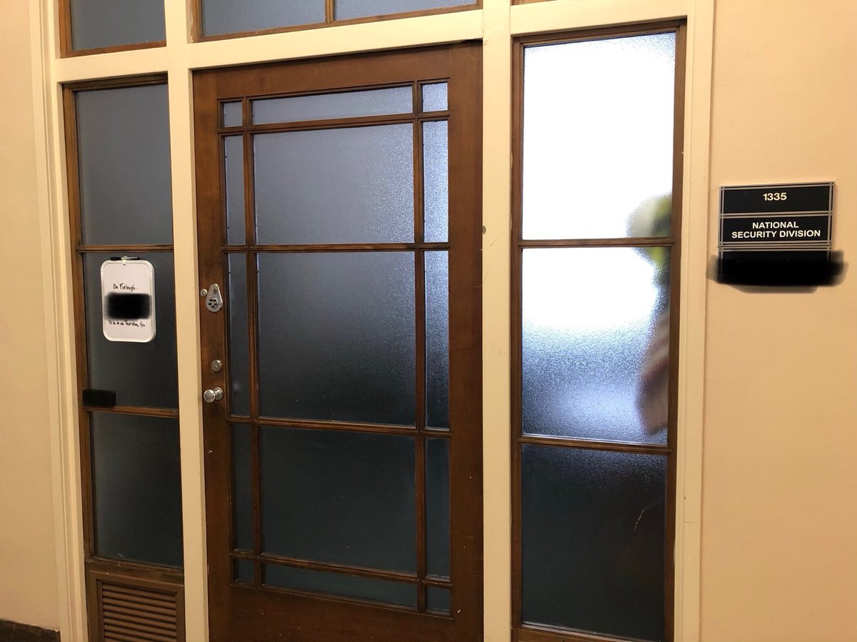 Inside the Justice Department: To the right, the sign says “National Security Division.” To the left, the sign says “On Furlough.”pic.twitter.com/p9Eao1RXKG
