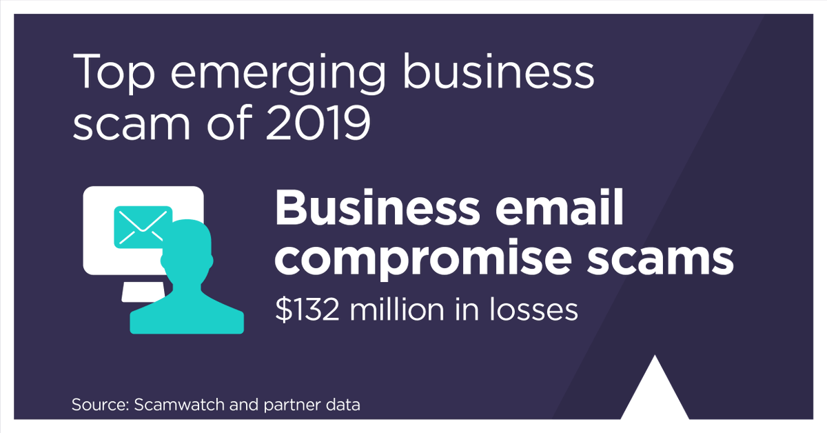 If you’re a business owner, always check who you're communicating with and watch out for urgent requests for funds. Business email scams have lead to a 120% increase in losses since 2018. Learn more in our new Targeting Scams report: http://ow.ly/LdAe50Af30h pic.twitter.com/aqz3pOXmgn