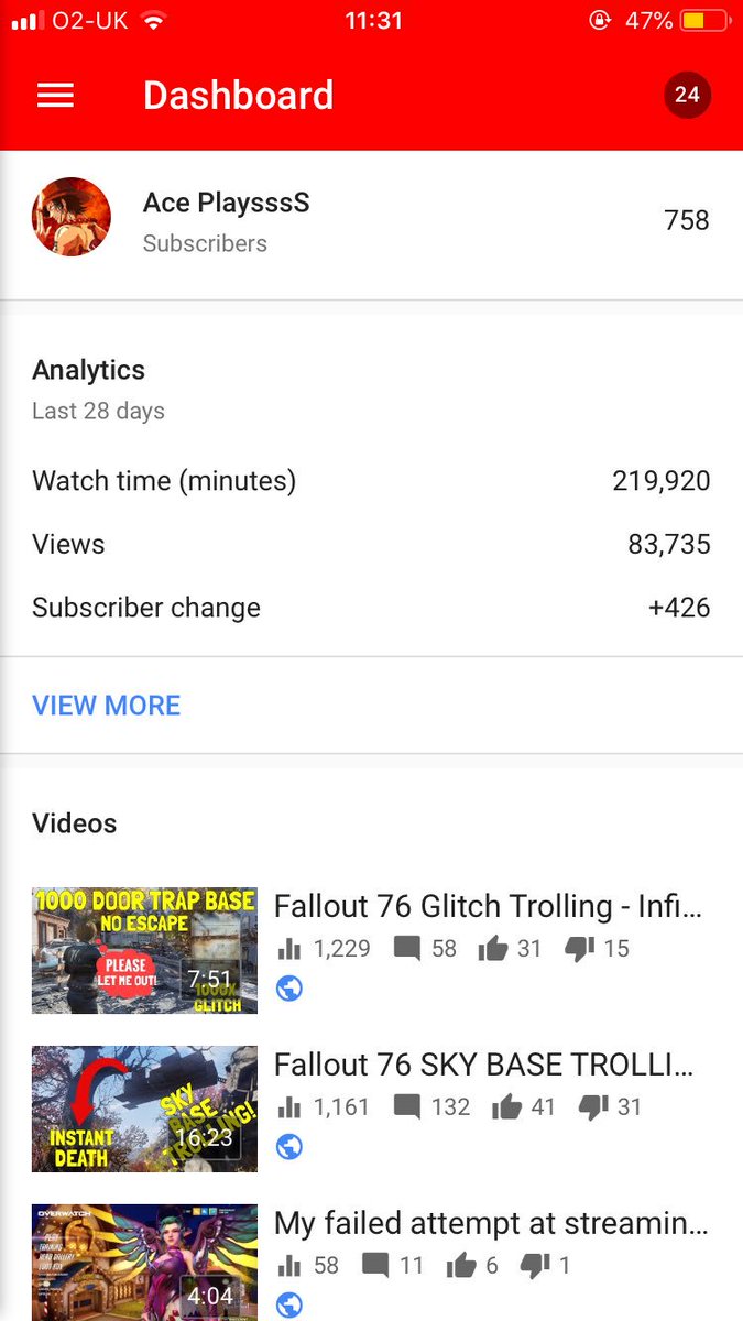 @TeamYouTube hey I’m still losing watch time and views, even though one video did really well yesterday and got 2k views all that watch time and views is gone because it seems to have dropped again, please helppic.twitter.com/dBfJJmbDlF