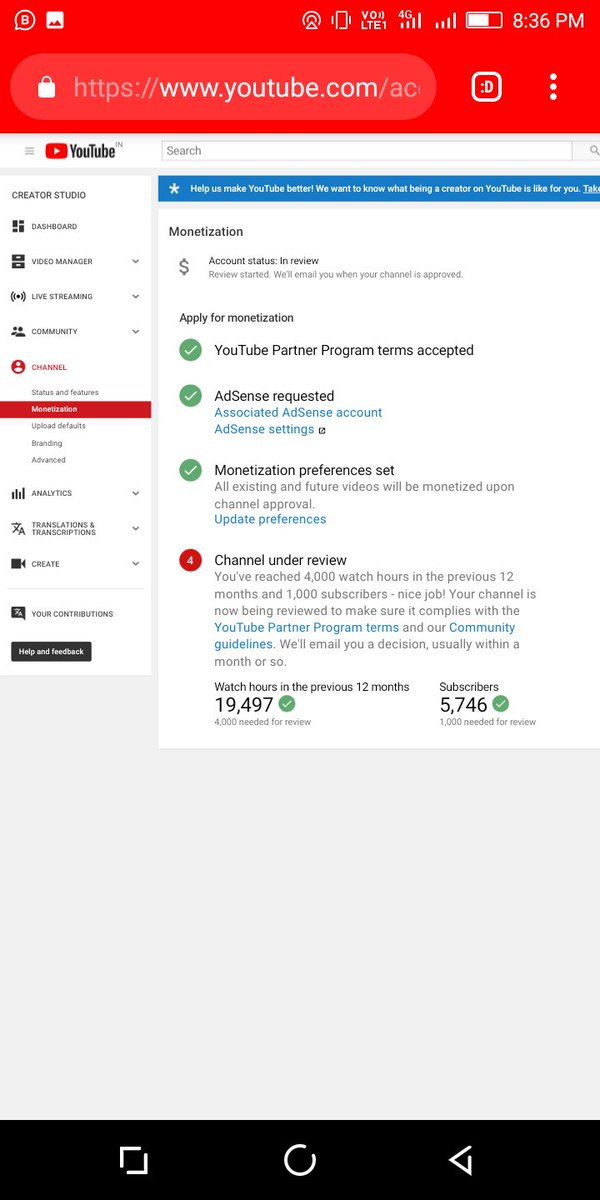 Thanks for the screenshot. If you've been waiting that long, your channel had a first review but we didn't come to a clear decision, so extra effort & resources are going into more reviews. We're on track to send out these final decisions by early next year.