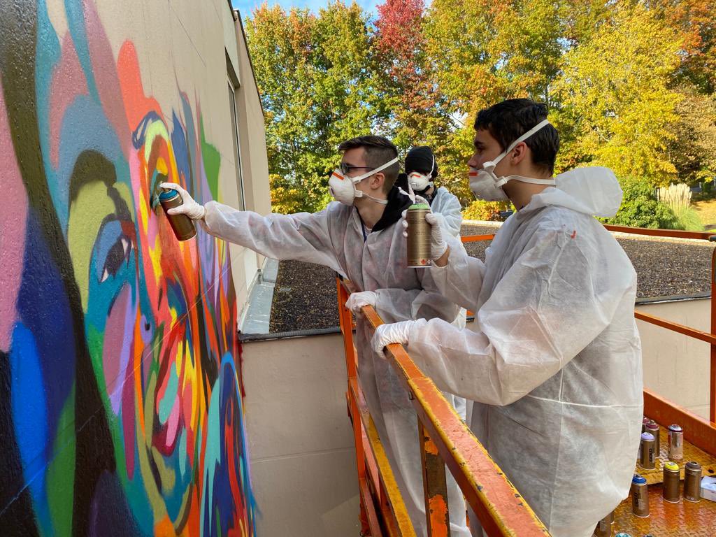 Jour 4 de la fresque sur le vivre ensemble et les valeurs de la République : aujourd’hui nos élèves ont pris de la hauteur pour avancer dans leur travailpic.twitter.com/AWOwPKSaiD