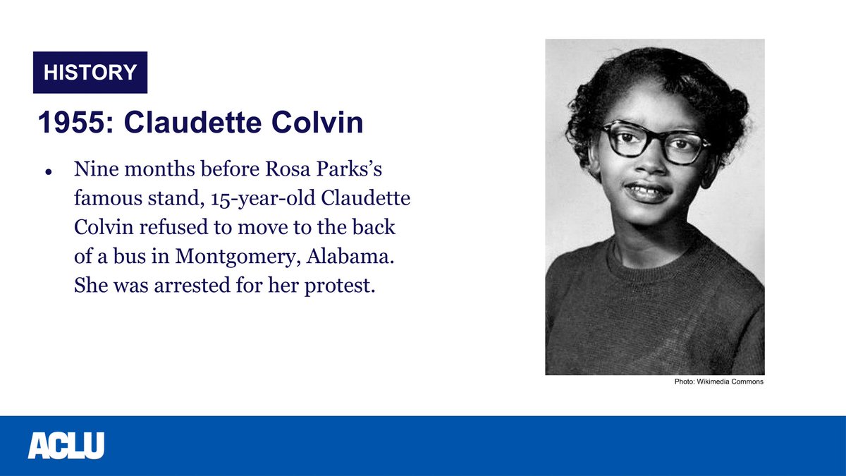 here's a pretty good story from NPR that touches on that: https://www.npr.org/sections/codeswitch/2015/02/27/389563788/before-rosa-parks-a-teenager-defied-segregation-on-an-alabama-bus …