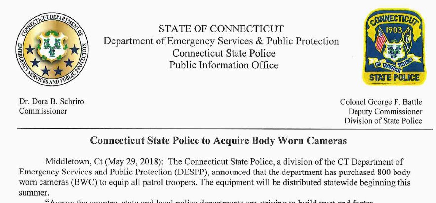 By law, Connecticut state police troopers were supposed to have body cameras two years ago. Now that they have them, state police must prove they will use body cameras as tools to hold police accountable to the people they are supposed to serve.https://twitter.com/SpencerSays/status/1001547527206948864 …