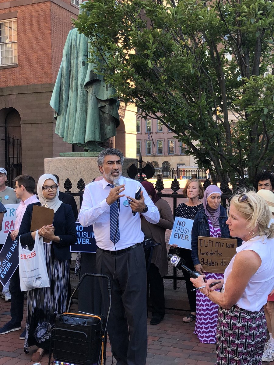 .@AbuSalah opens the rally with a welcome and thanks to everyone who has decided to #StandWithMuslims this week. #NoMuslimBanEverpic.twitter.com/dLLXBXKxm5