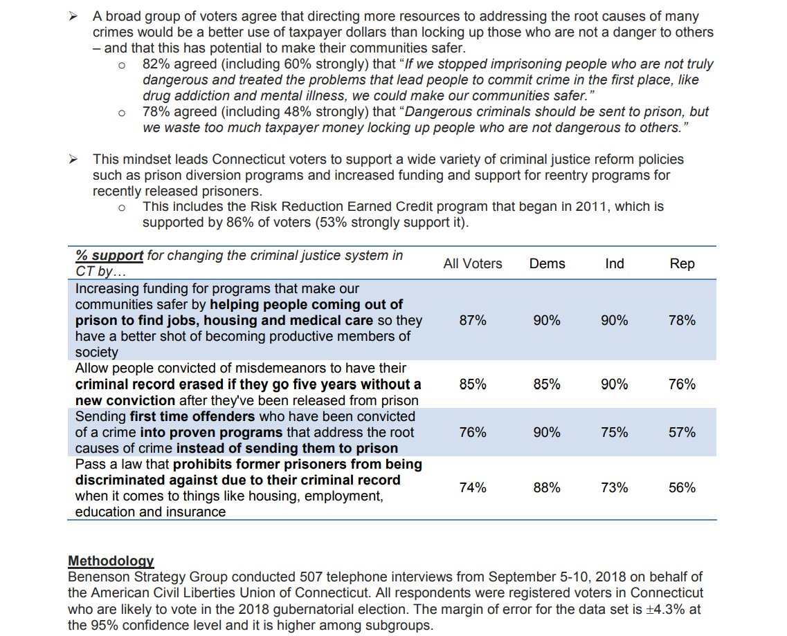 Smart Justice policies make sense to CT voters. 87% of CT voters support increasing funding for programs that help people returning home after incarceration find jobs & housing, including 90% of Democrats, 90% of Independents, and 78% of Republicans.https://www.acluct.org/en/press-releases/new-statewide-poll-shows-majority-connecticut-voters-support-criminal-justice-reform …