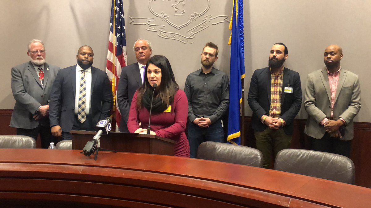 Sandy Lamonico, ACLU-CT Smart Justice Criminal justice organizer spoke today at the #UnlockTheVote press conference.pic.twitter.com/BbtJZvnGnc