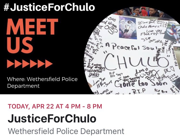 Join @MoralMondayCT TODAY (4/22) at 4pm in Wethersfield to demand #JusticeForChulo. We will be there.pic.twitter.com/NDiFZ2HTCr