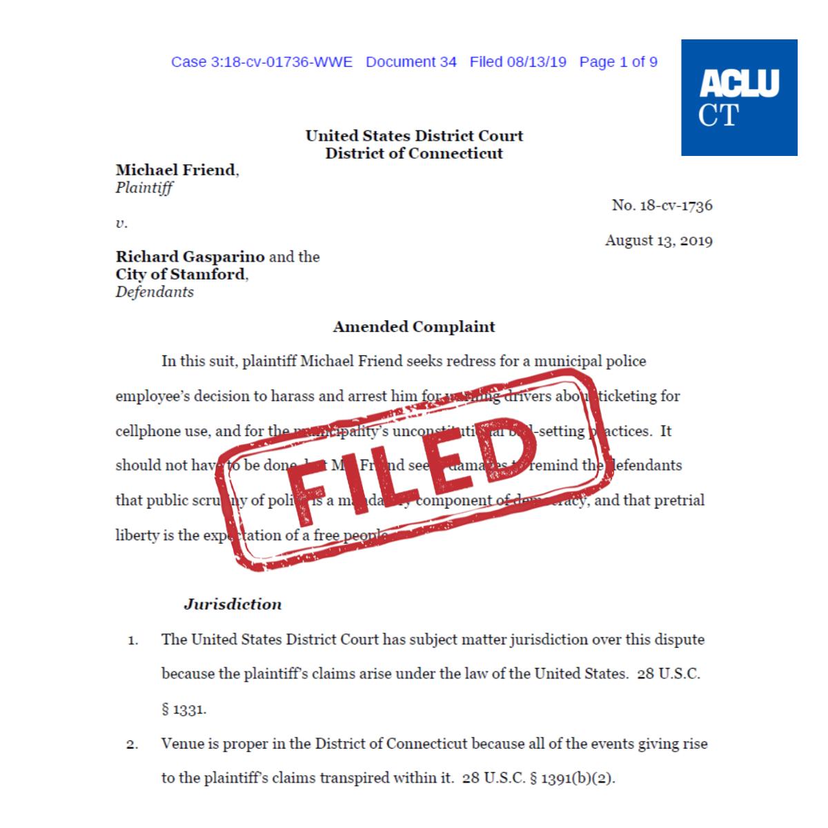 BREAKING: We’re taking action in court to hold the City of Stamford accountable for violating our client's rights when it set his bail.pic.twitter.com/tVyH5r4Uae