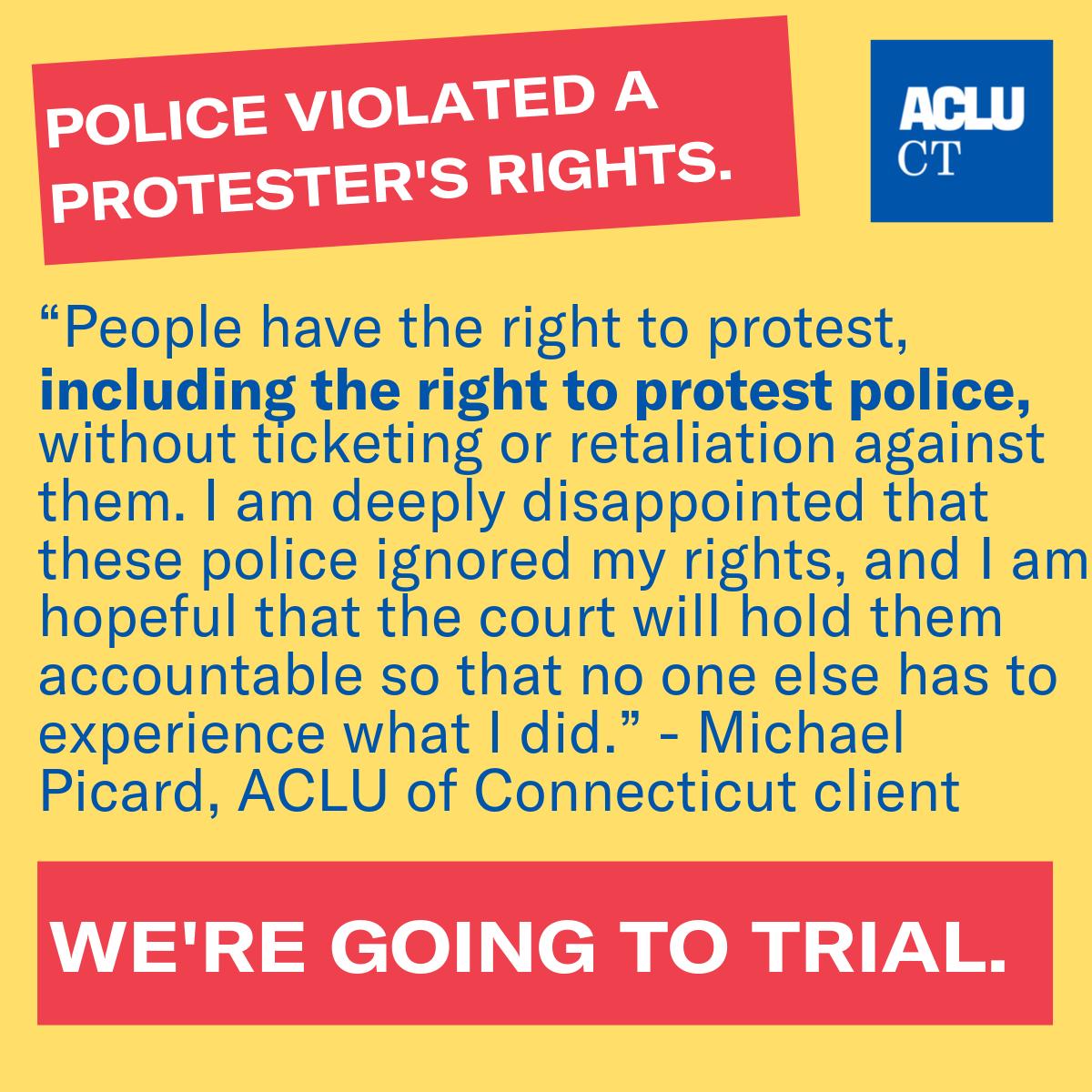 “The evidence, including video, will show that these police employees were more concerned with covering up their bad behavior, undermining free speech, and retaliating against a protester than with upholding the law." - Dan Barrett, our legal director and attorney on the case