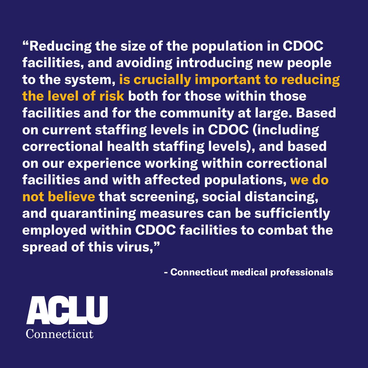 On March 27th we sent a letter to the Rules Committee of the Connecticut Judicial Branch committee members to consider changing pre-trial release rules as a public health measure during the COVID-19 pandemic.pic.twitter.com/06Btg6ESv3