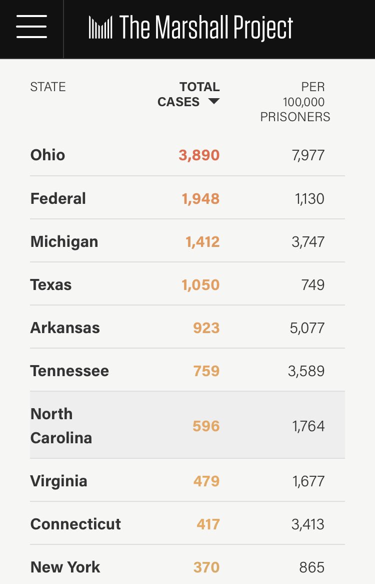 CT has among the most confirmed COVID-19 cases in prisons & jails in the US, near states that have announced wider testing and that incarcerate more people. The DOC‘s backward response to COVID-19 threatens the lives & health of people in the DOC & our state’s health as a whole.pic.twitter.com/9FmVjkPArr