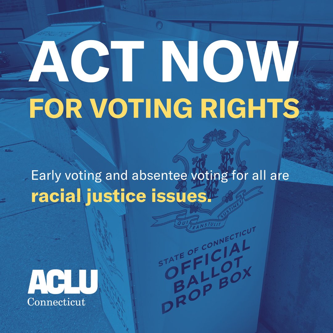 Our democracy will be stronger if our state gets rid of its archaic voting laws, which contribute to systemic racism, and enacts early voting and absentee voting for all. ACT NOW: Tell the House to vote yes on early voting and absentee voting. https://action.aclu.org/send-message/ct-hj58-hj59-house-floor?initms_aff=ct&initms_chan=eml&utm_medium=eml&initms=210406_affcampaign_state-constitutional-amendment-resolutions_gradead_sail&utm_source=sail&utm_campaign=affcampaign&utm_content=210406_votingrights_state-constitutional-amendment-resolutions_gradead&af=s5zn7qv8IjTXaJk3MXm5bkNppEYGePT1QE8vG7UILlk1pn0aRB7aPtryWPm5YGxjykKBmha101HvcLeTIIBfk1ILzyD1KX56sepbOldGRDlkHMU61DyWb8d/wg7si%2BskKe2IWOHMQq3CKBf4qvAISE89Dlw10xynFqhi1s%2BVY7U%3D&ms_aff=ct&ms_chan=eml&ms=210406_affcampaign_state-constitutional-amendment-resolutions_gradead_sail …pic.twitter.com/5nQtoT2xu4