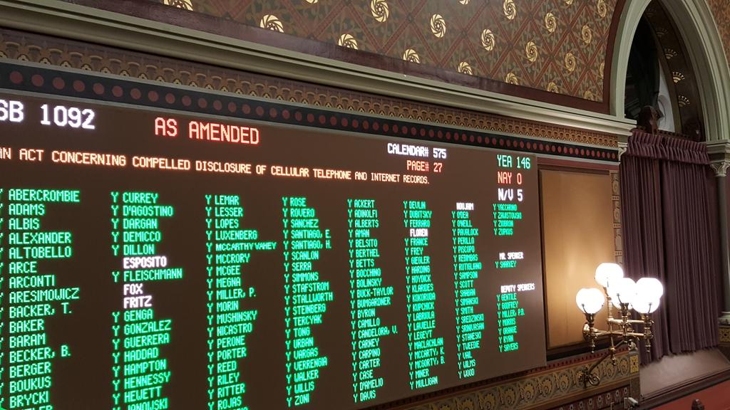 Cell phone tracking bill passes House! On to the Senate! #ctpoliticspic.twitter.com/jKKEGPVUgw