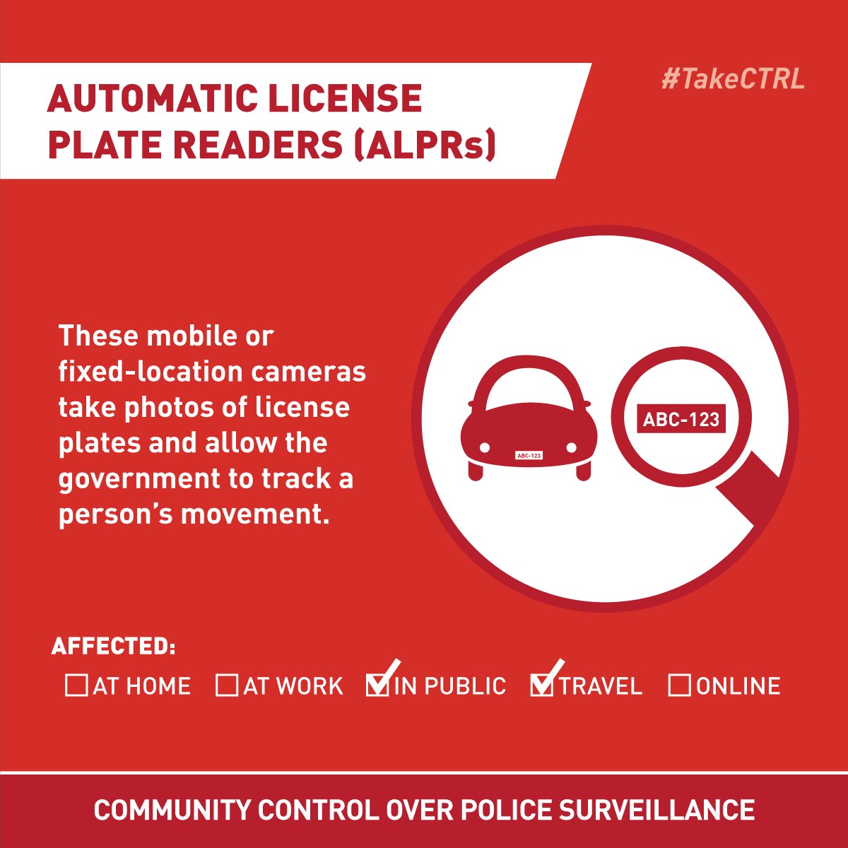 With automatic license plate readers, police can tell where you're going & where you've been. It's time to #TakeCTRL to protect #privacy.pic.twitter.com/GnD4Y1BH8O