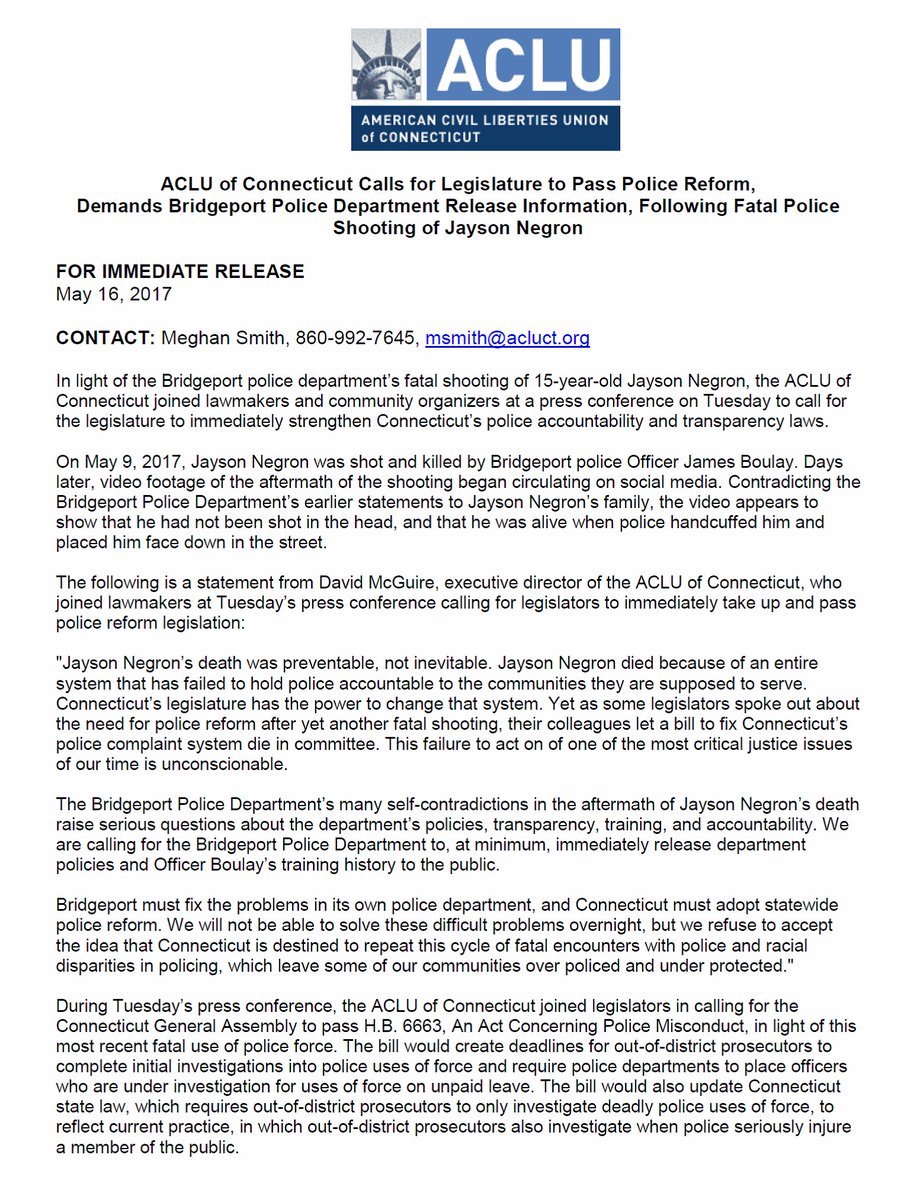 We support H.B. 6663, introduced by @Porter4DaPeople, to increase police accountability. It's a start toward reform: http://www.acluct.org/wp-content/uploads/2017/03/ACLUCT_2017-Testimony-Supporting-HB-6662-and-6663-Police-Misconduct.pdf …