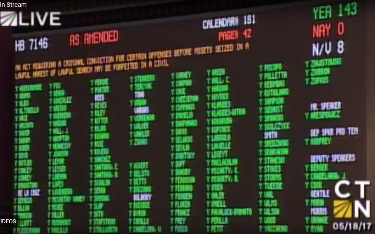 Great news for liberty & justice: HB 7146, a civil asset forfeiture reform bill, just passed the CT House of Reps. without a single no vote!pic.twitter.com/ovUUR50ow3