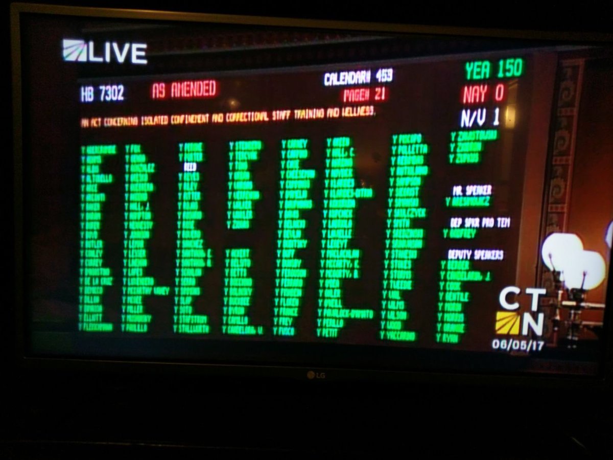 Great news: last night, the CT House took a big step toward justice by unanimously passing a bill to #StopSolitaryForKids.pic.twitter.com/aYbQZUX7qW