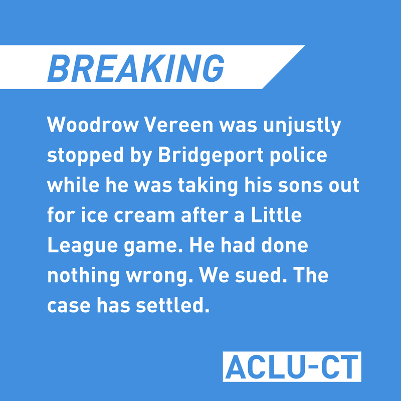 BREAKING: Our lawsuit on behalf of music minister Woodrow Vereen against 2 Bridgeport police has been settled. More: http://www.acluct.org/updates/aclu-ct-reaches-settlement-in-lawsuit-stemming-from-unjust-traffic-stop-by-bridgeport-police …pic.twitter.com/EvP05sCMIu