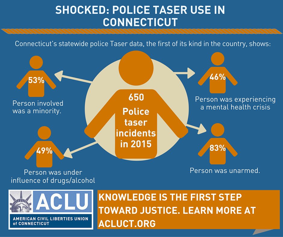 Since 2005, at least 18 people have died after being Tased by police in CT. Twelve were Black or Latino. http://www.acluct.org/updates/tasers