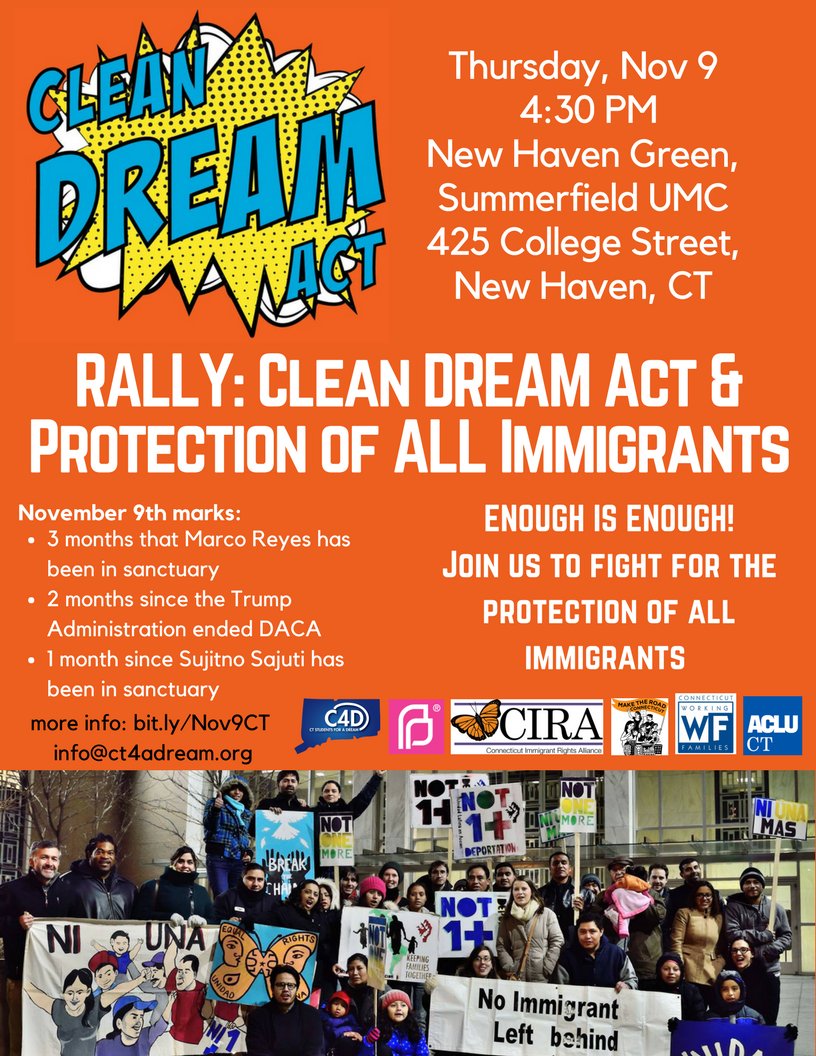 Join us, @CT4aDREAM @MaketheRoadCT @ppvotesct and more on November 9 in #NHV to call for a clean DREAM Act and stand up for immigrants.https://twitter.com/CT4aDREAM/status/925468711154274304 …