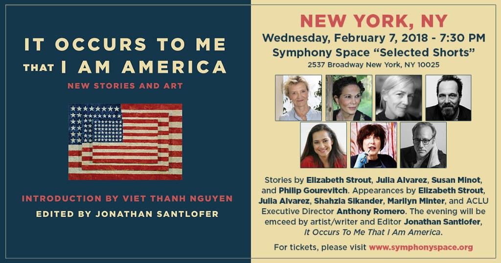 If you're in NYC on this snow day, please join @ACLU for a performance at @SymphonySpace for a @SelectedShorts reading of It Occurs to Me That I Am America. https://buff.ly/2nI6Lci pic.twitter.com/cZ5iEybDrW
