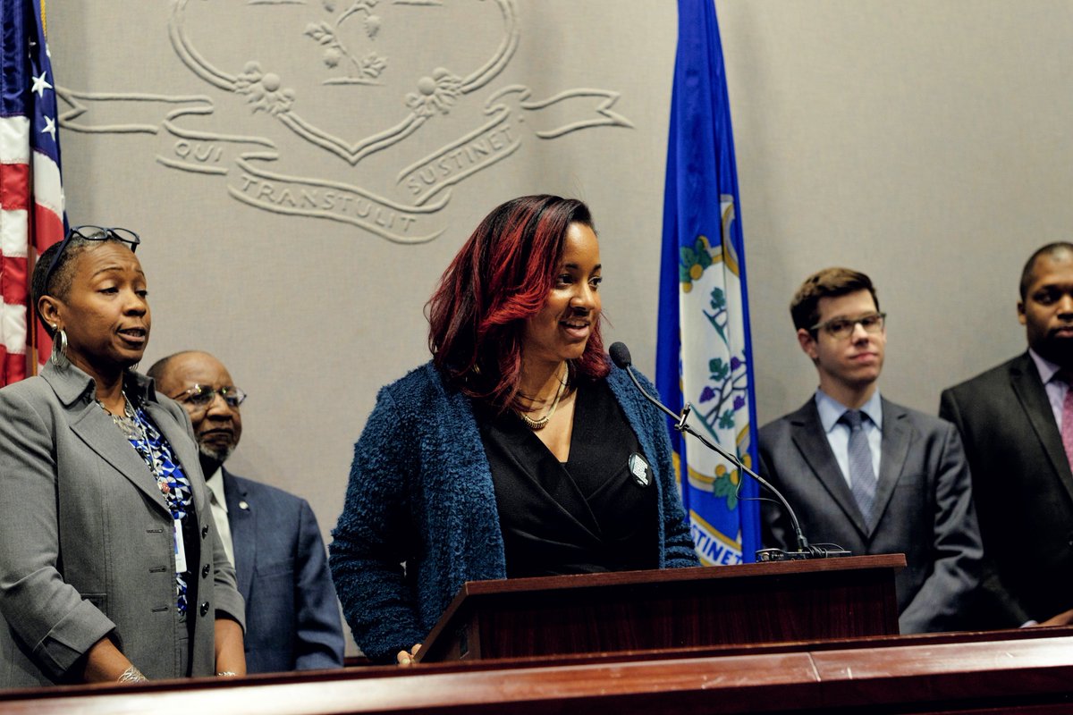 "Connecticut can do better. We can stop the cycle of trauma and begin supporting the healing that is necessary for incarcerated women and families. This bill is a chance to do just that.” - @LomonicoACLUCT, speaking as an advocate, a formerly incarcerated woman, and a mother.pic.twitter.com/S20obqwokR