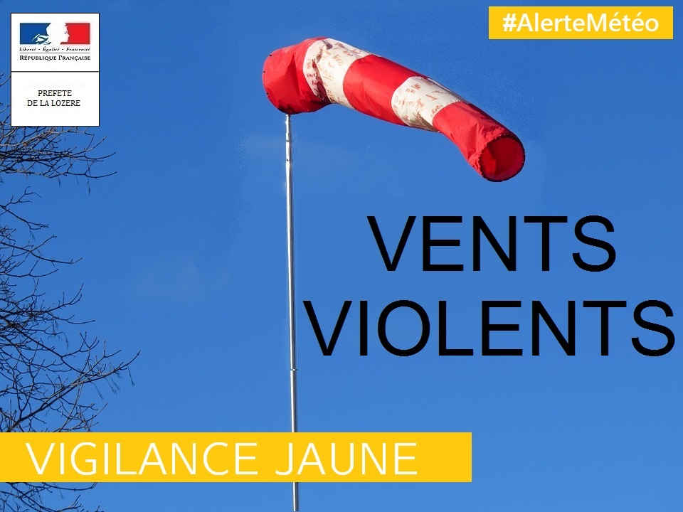 La #Lozère est placée en#Vigilance Jaune pour des#VentsViolents. Soyez prudents ! Tenez-vous informés de l’évolution de la situation.pic.twitter.com/3zfn7sRZJ3