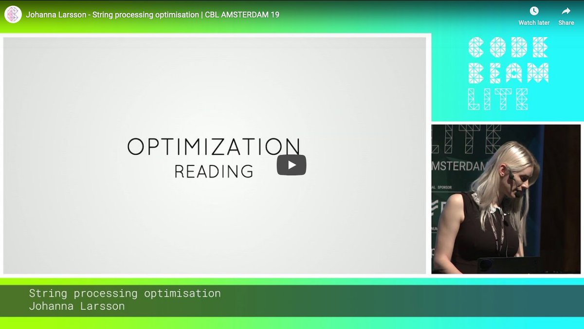 #CBLAmsterdam talk video is now live! Stuck with badly performing#Elixirlang code? Discover how the language lends itself to string processing with@joladev http://ow.ly/qQxB50xD9cy pic.twitter.com/z7WkPInKff