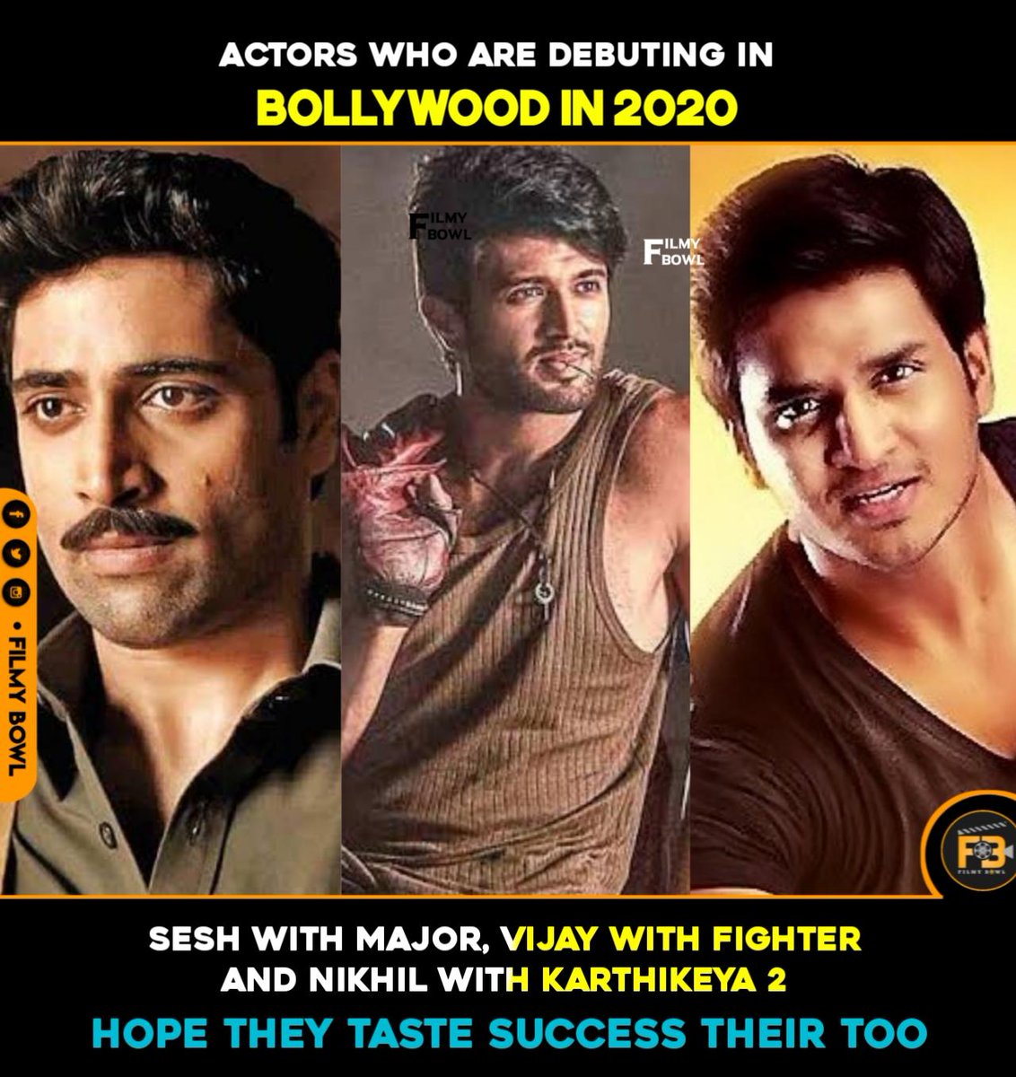 #Bollywood in 2020.@AdiviSesh with#MAJOR@TheDeverakonda with#Fighter@actor_Nikhil with#Karthikeya2 Hope they Taste Success their too Follow@FilmyBowlpic.twitter.com/uxwbjjrepZ
