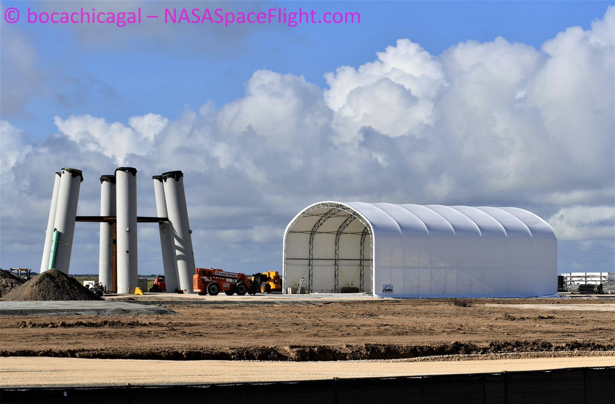 🔴 #STARSHIP UPDATE #242 : Actu du 23/10 : La coiffe du prototype SN8 continue à être soudée au reste de la structure tandis qu'une tente est apparue a côté du launchpad orbital. Nouvelle fenêtre de test prévue ce mercredi. #SpaceX 📸 @BocaChicaGal via https://youtu.be/eixLeRmjwuw pic.twitter.com/DGGz96wpgI