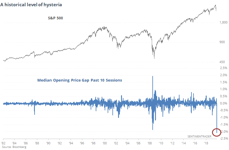 If this morning's drop holds anywhere near current levels, the S&P 500 futures median opening gap over the past 10 days is -2.1%. That's worse than any period in history, exceeding the prior record from October 27, 2008.pic.twitter.com/5ReVIFWdBF