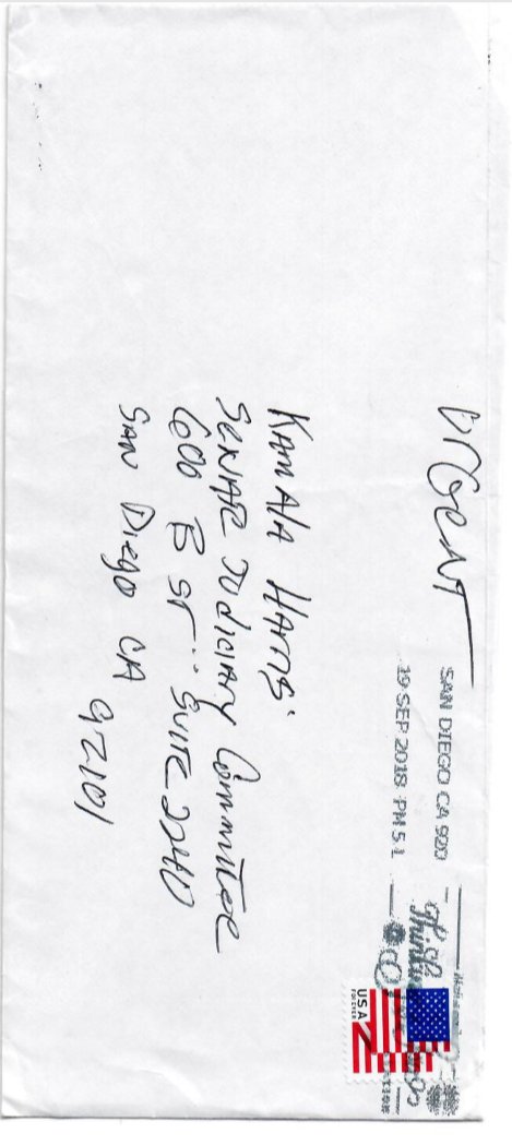 Any Democrats of goodwill, you need to realize what your leaders are doing & tell them to STOP for the good of our country & real women victims of sexual assault. Here is Senator Harris DEMANDING Judiciary Committee refer an anonymous letter to FBI for investigation. 1/2 pic.twitter.com/ZeKNqOmKCT
