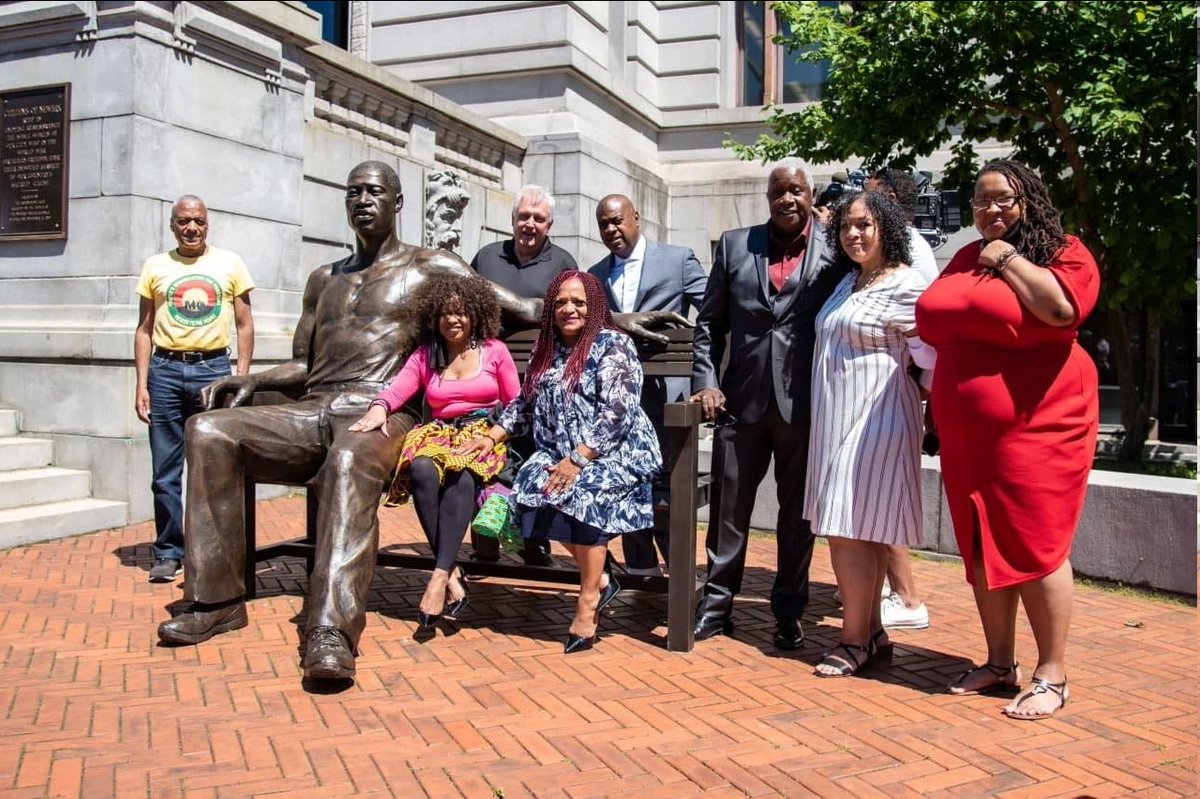 У здания городского совета в городе Ньюарк (штат Нью-Джерси) торжественно открыли памятник Джорджу Флойду. Бывший грабитель, наркоторговец и фальшивомонетчик изображен отдыхающим на скамейке.pic.twitter.com/lmVVwyKeJ9