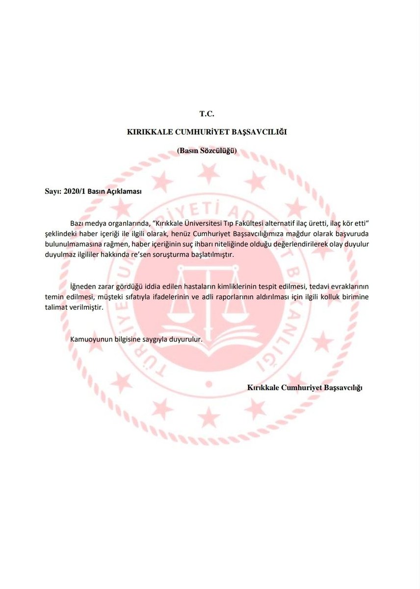 Kırıkkale Cumhuriyet Başsavcılığı tarafından yapılan basın açıklaması:pic.twitter.com/aHK50DucL1