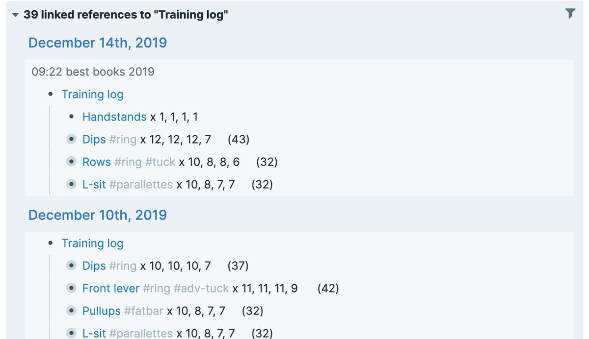 "i've been using Daily Notes as a pseudo-journal, so there's usually lots of rando paragraphs in there that have nothing to do with what i'm reading. the [[Log]] trick filters out everything besides what i read, watched, listened to"https://twitter.com/aaronzlewis/status/1206633161121243141 …