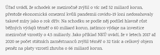 Nejvyšší kontrolní úřad: Téměř 90 procent meziročního nárůstu celkových výdajů loňského státního rozpočtu (Babišovy vlády) nesouviselo s výdaji souvisejícími s pandemií nemoci covid-19. https://www.e15.cz/domaci/nku-kritizuje-lonske-utraceni-statu-rust-beznych-vydaju-byl-enormni-s-pandemii-to-nesouviselo-1388974 …pic.twitter.com/rWDbAoltME