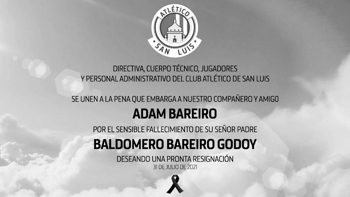 Lamentamos profundamente el fallecimiento del señor Baldomero Bareiro, padre de nuestro compañero y amigo Adam Bareiro.pic.twitter.com/AyCFOdDHAV