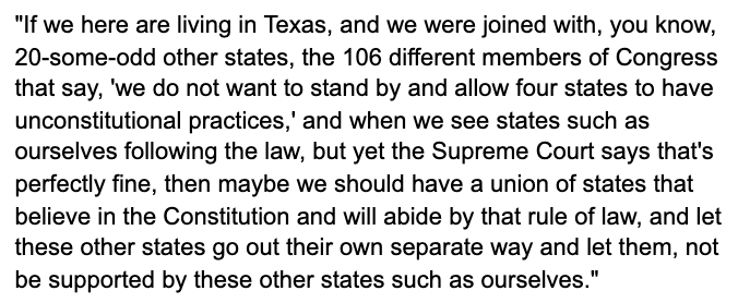 More from @AllenWest tonight -- this time less 'we're outta here' and more 'actually, they're the ones who should secede.' "...let these other states go out their own separate way and let them not be supported by these other states such as ourselves." https://rumble.com/vbtb5j-gop-chair-of-tx-ltc-allen-west-reacts-to-scotus-shirking-duty.html?mref=1kztv&mc=6zrce …pic.twitter.com/wga8NMCDtm