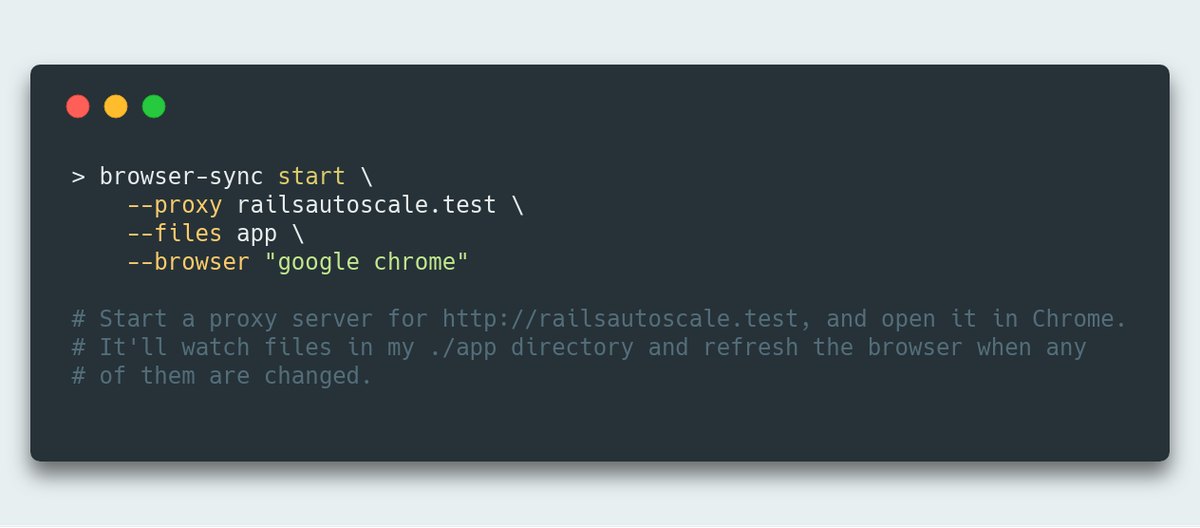 browser-sync is an awesome utility for live-updating your browser as you make code changes. I particularly love it for in-browser design with @tailwindcss. Use it to proxy an existing web app or as a static web server. https://browsersync.io pic.twitter.com/JuzXqrf838