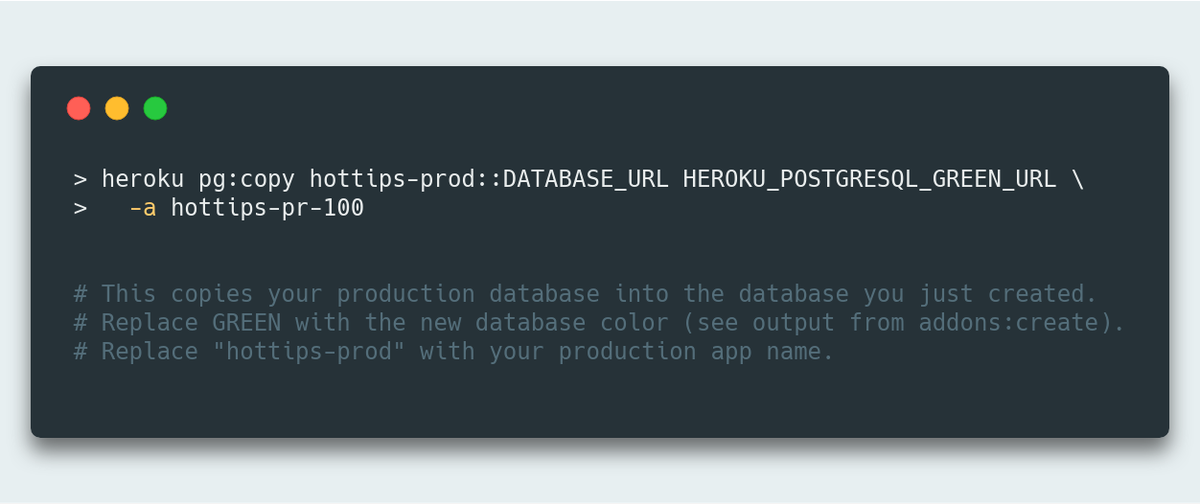 Recently I had some complex migrations that I wanted to test on a review app with production data. This is how you copy a database from one app to another on Heroku.