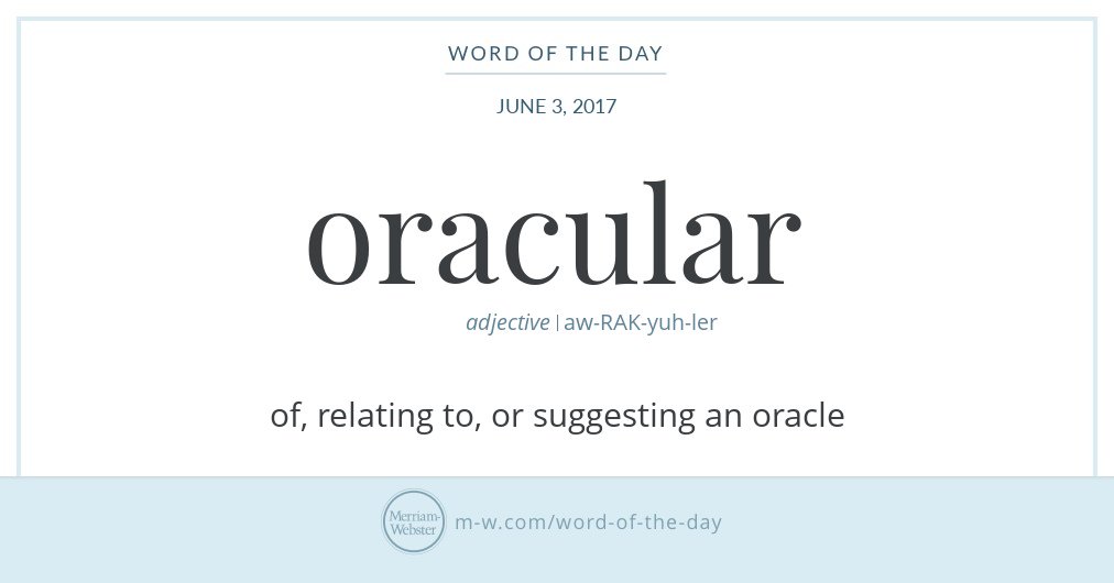 #WordOfTheDay is 'oracular' http://s.m-w.com/2pLhank pic.twitter.com/1WjT2BB4s8