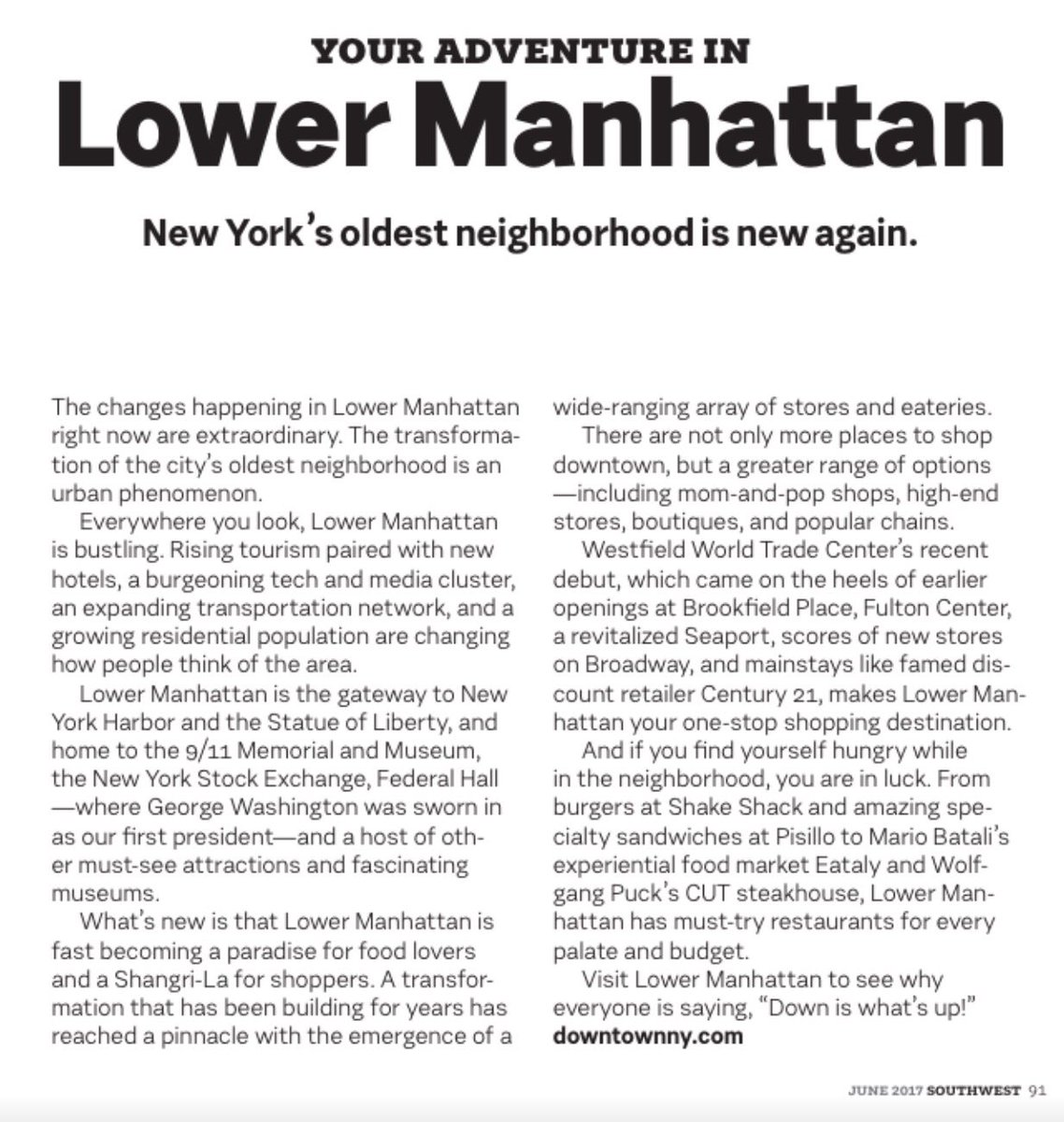Lower Manhattan - NY's oldest neighborhood - is now its hottest new place for fun - read all about it https://issuu.com/southwestmag/docs/june2017/92 …