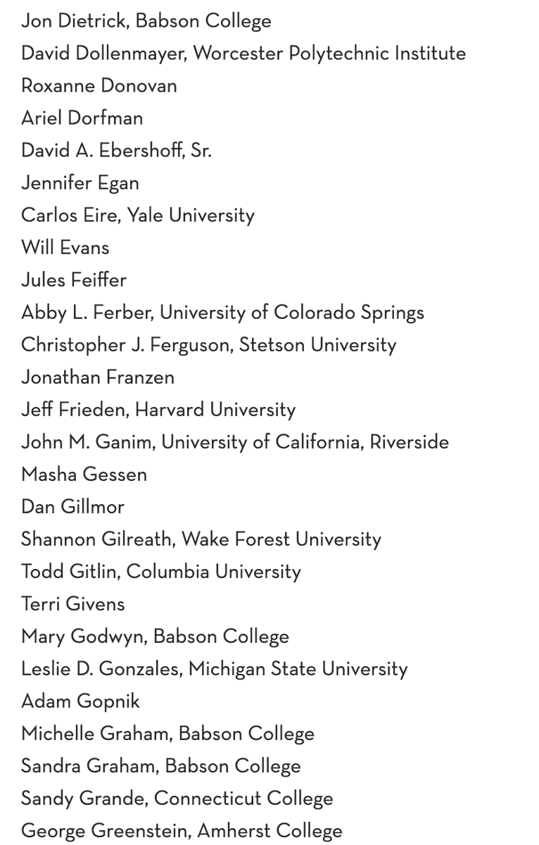 @PENamerica letter to@babson is impressively diverse. (These are just some.) https://pen.org/letter-to-babson-college-to-reinstate-professor-asheen-phansey/ …pic.twitter.com/fz6EJUeG26