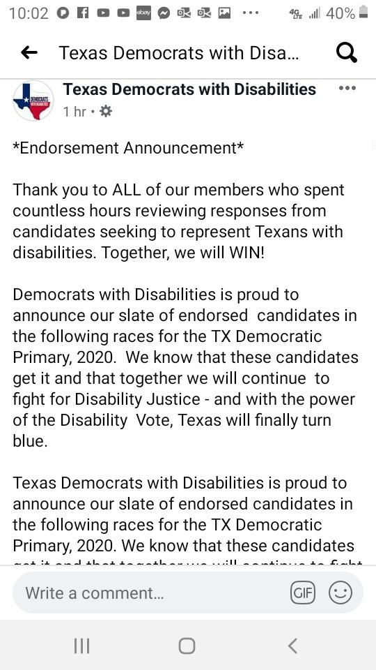 I'm honored to receive this endorsement from Texas Democrats with Disabilities.