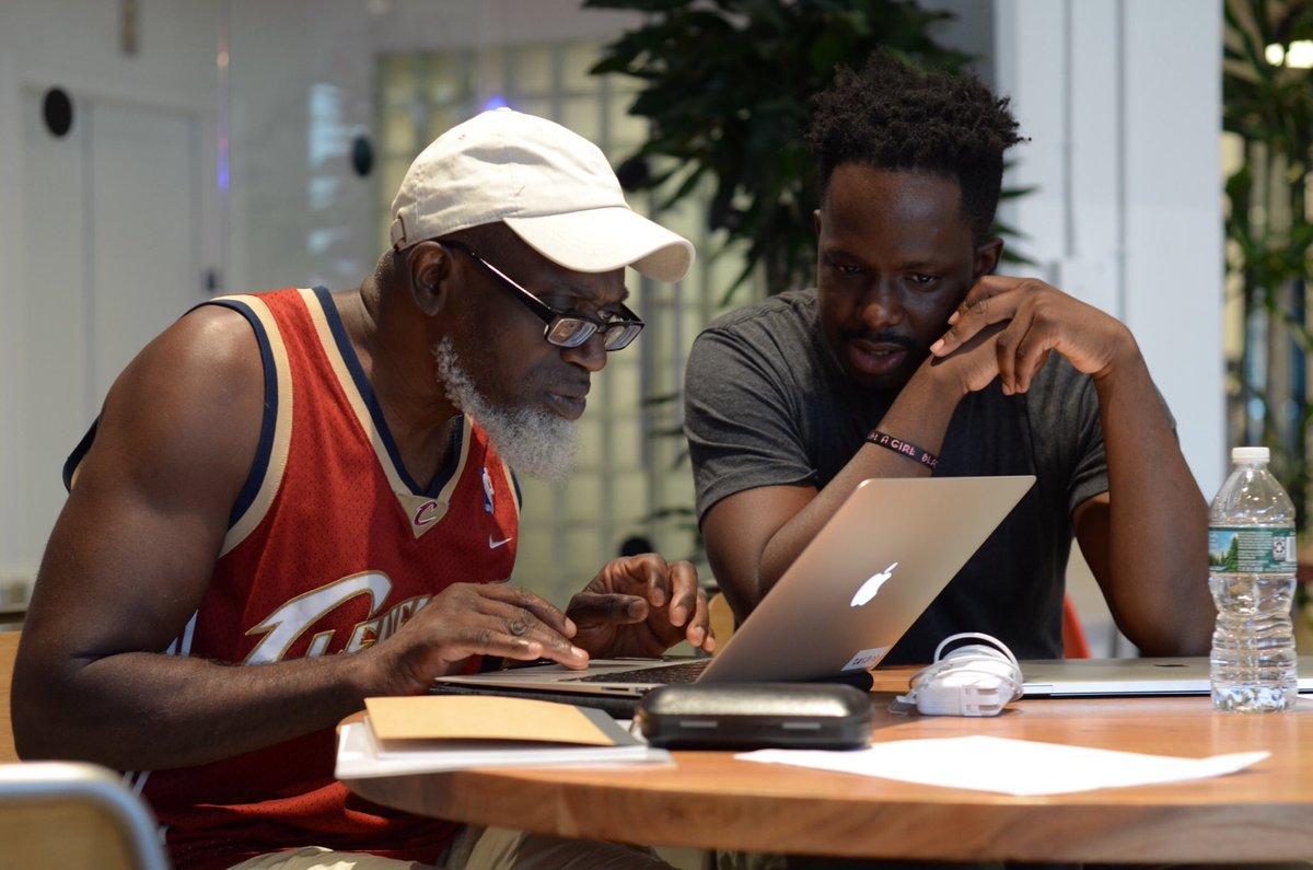 Code Cooperative student Andrew, who was incarcerated for over 20 years, working hard on his first HTML project with his mentor Adekunle (