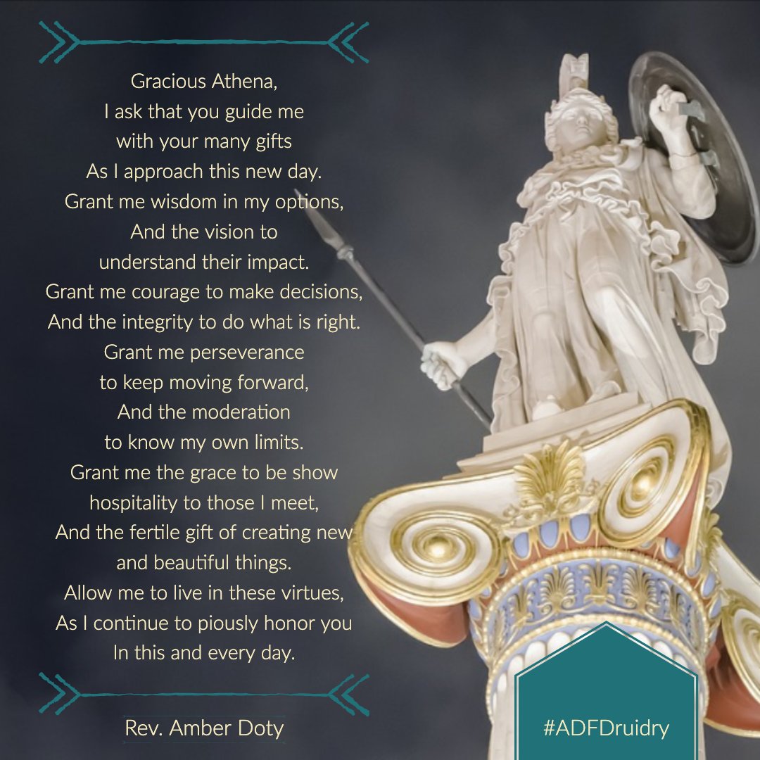 Gracious Athena, I ask that you guide me with your many gifts As I approach this new day. Grant me wisdom in my options, And the vision to understand their impact. Grant me courage to make decisions, And the integrity to do what is right.pic.twitter.com/i9uhnN3AEX