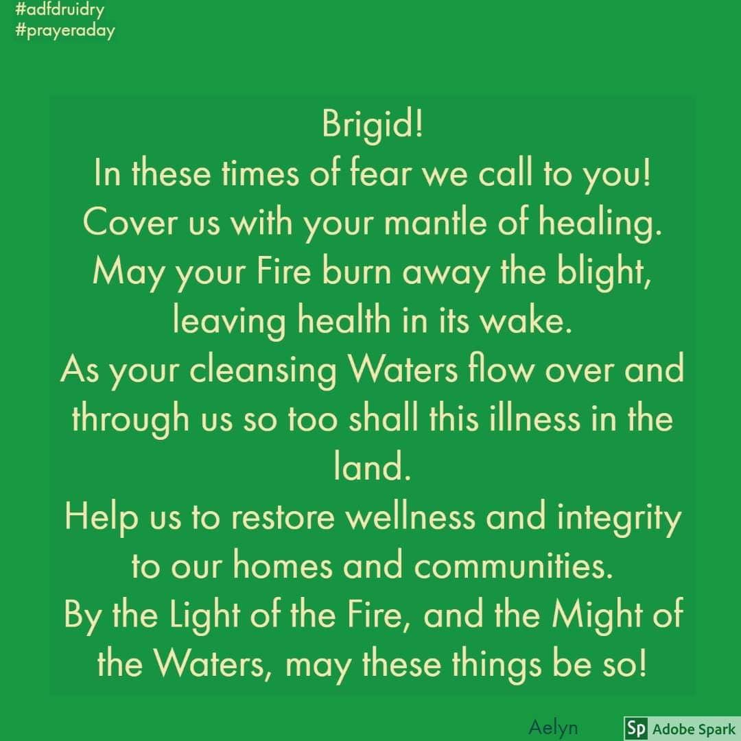 Brigid! In these times of fear we call to you! Cover us with your mantle of healing. May your Fire burn away the blight, leaving health in its wake. As your cleansing Waters flow over and through us so too shall this illness in the land.pic.twitter.com/Cedfzgguny